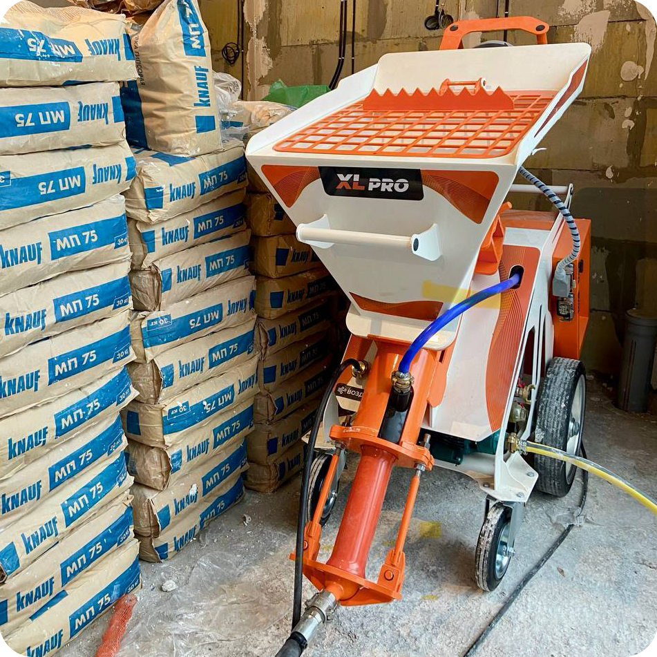Мы выполняем механическую штукатурку на современном оборудовании по технологии Knauf